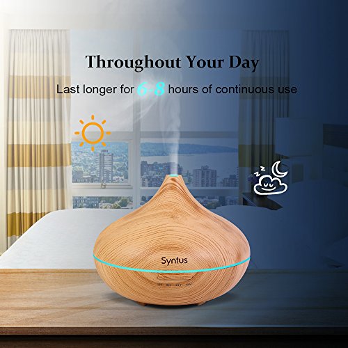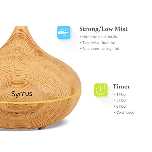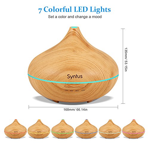 Syntus Essential Oil Diffuser, 300ml Aromatherapy Cool Mist Ultrasonic Aroma Diffusers with 7 Colorful LED Display, Timer Setting, Waterless Auto...