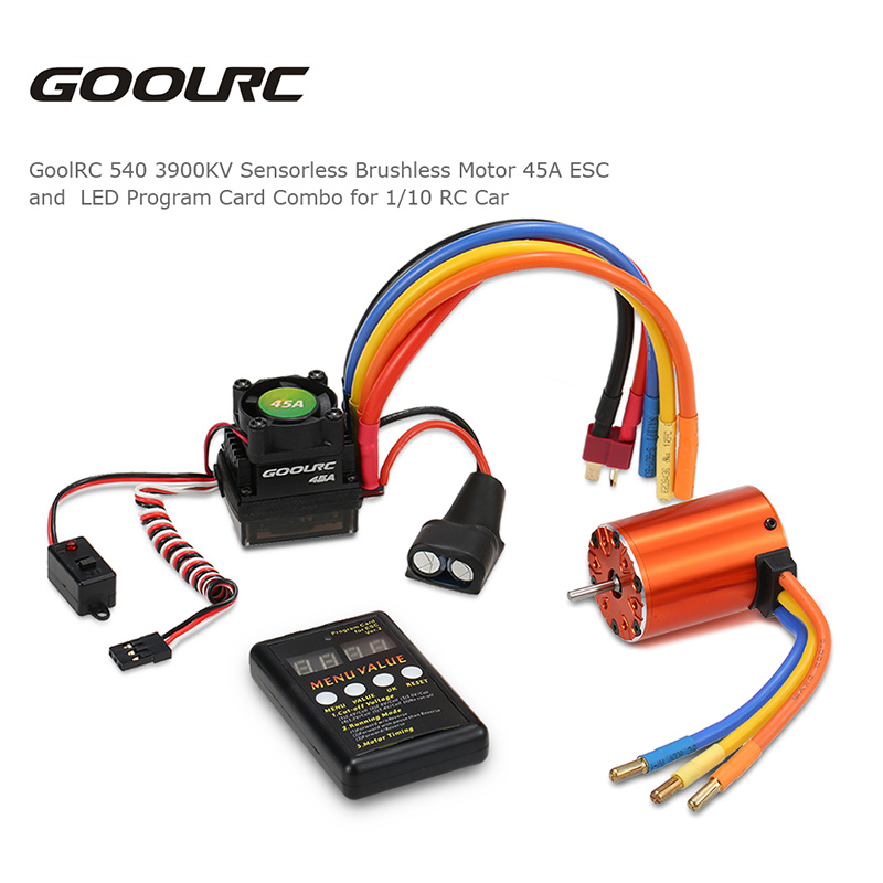 The set includes a 540 3900KV sensorless brushless motor, a 45A ESC and a LED program card, which is perfectly fit for the 1/10 RC car. This motor is designed to provide both quality and performance at an affordable price. The ESC with LED program card allow you to conveniently program your ESC settings. What you needed is all included in the combo!
