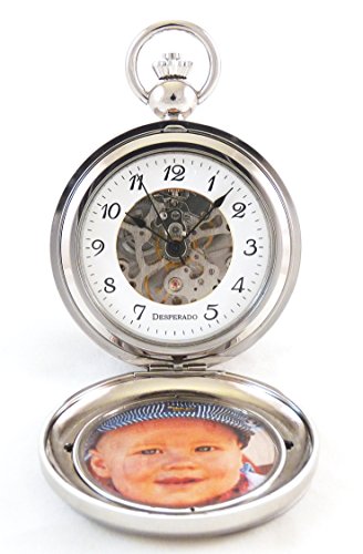 -. Title : Desperado "Seaside" Chrome Photo Insert Picture Frame Pocket Watch Built in Stand