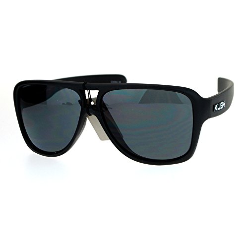 KUSH Sunglasses Mens Sporty Flat Top Racer Aviator Matte Black Frame