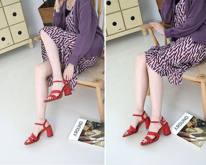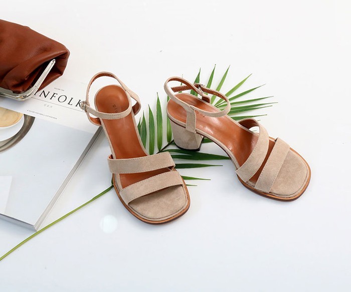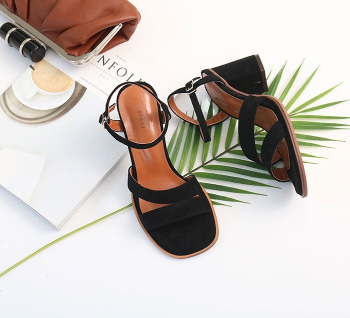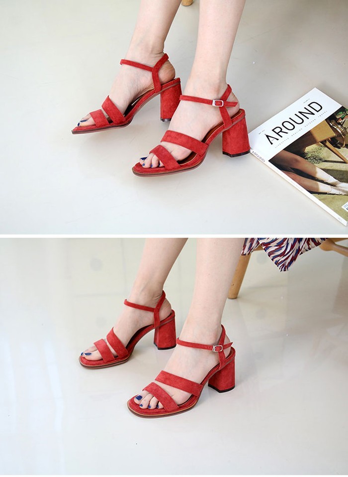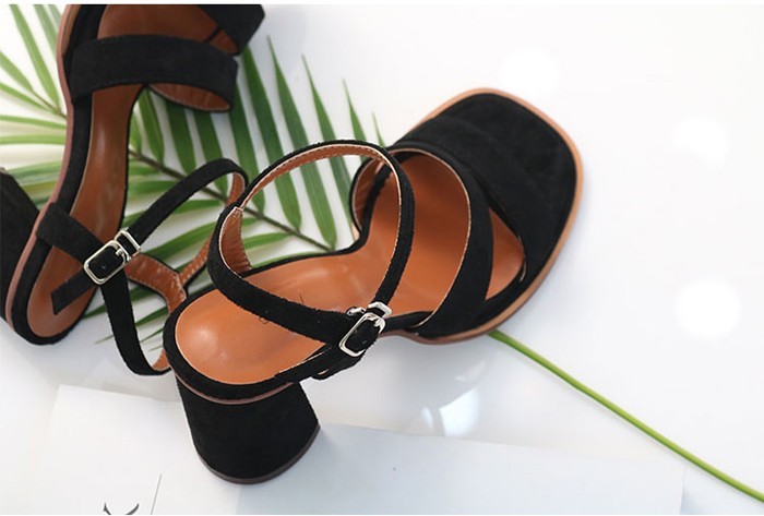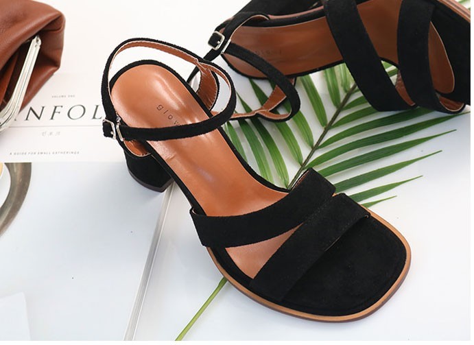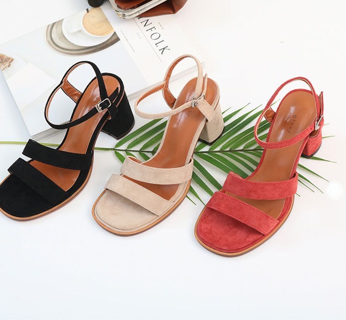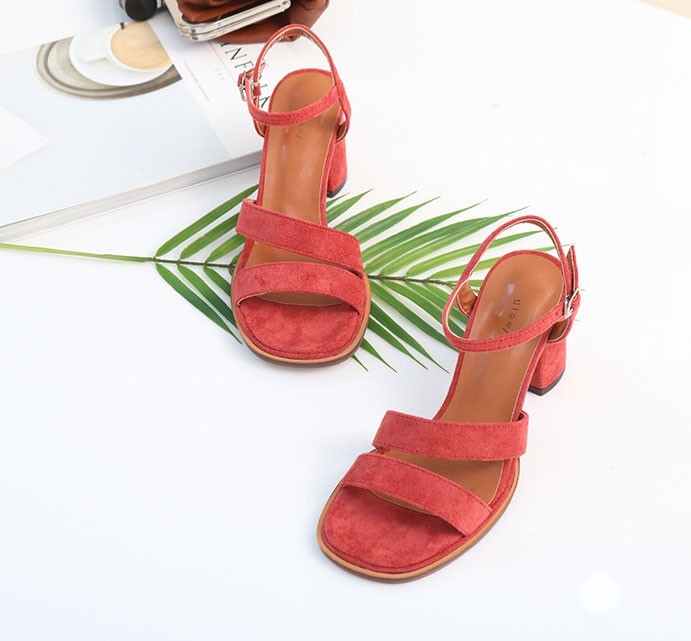 商品名:サンダル レディース 太ヒール チャンキーヒール スエード調 アンクルストラップ 2018 春 ファッション 靴 婦人靴