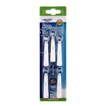 Studio : Equate Publisher : Equate Binding : Misc. Product Description Use Equate EasyFlex Total Power Replacement Brush Heads to help keep your teeth and gums clean. They have a special multi-level bristle pattern that can penetrate deep into hard-to-reach spots. These versatile electric toothbrush heads are designed to fit EasyFlex Total Power, Infinity Rechargeable Power and most Oral-B models. 0