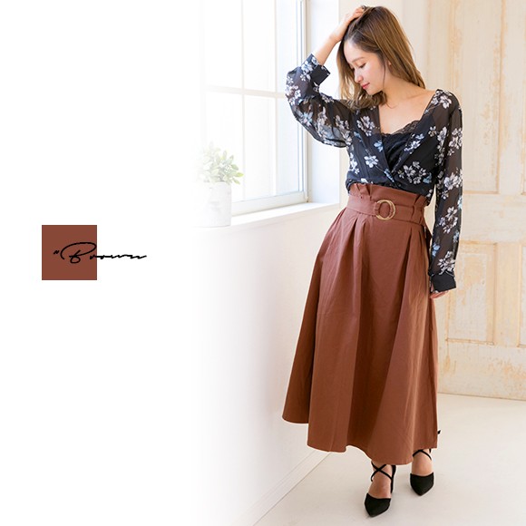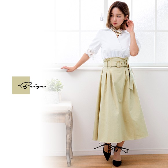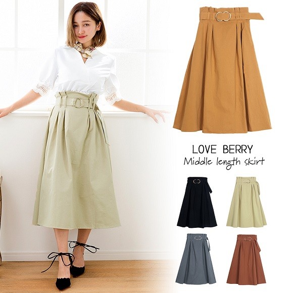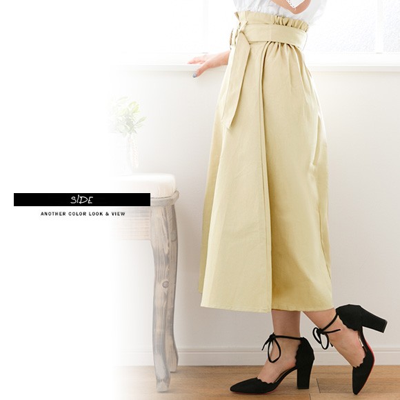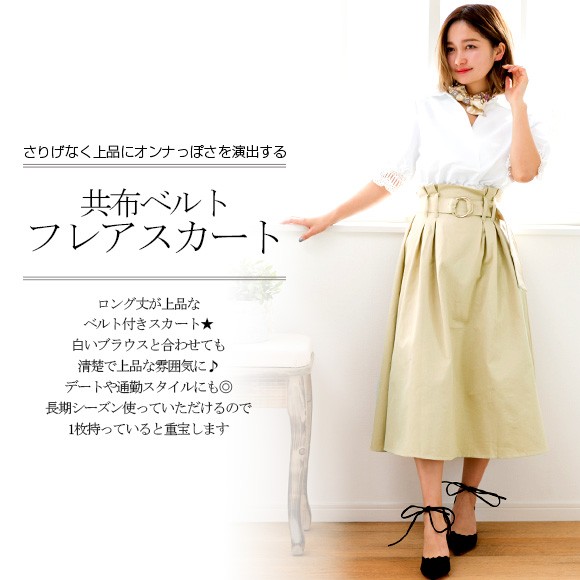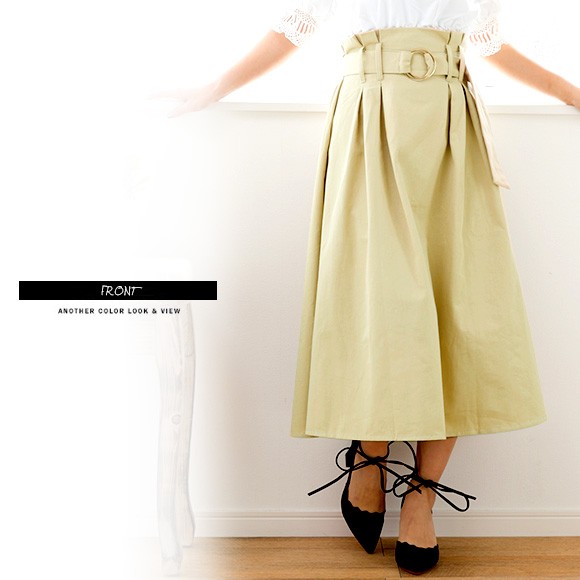 ロング丈が上品なベルト付きスカート。