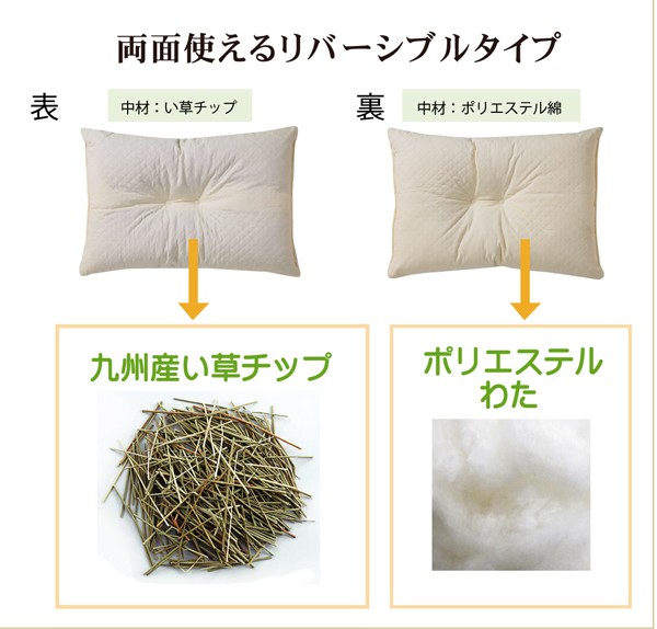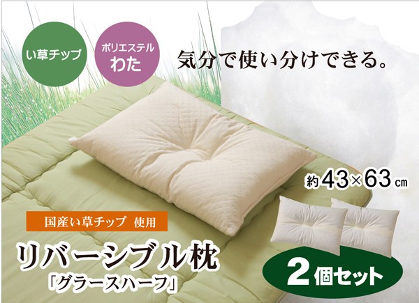 【商品名】ピロー 枕 国産い草チップ入り 『グラースハーフ』 2個組 約43×63cm リバーシブルタイプ