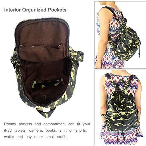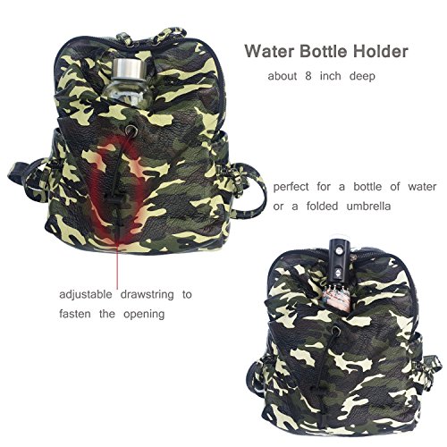 FEATURES: it features a water bottle holder on the front that is about 8" deep and the openings is adjustable with a drawstring; it also has a hole for earphone which allows you to enjoy music even your device is inside the bag.