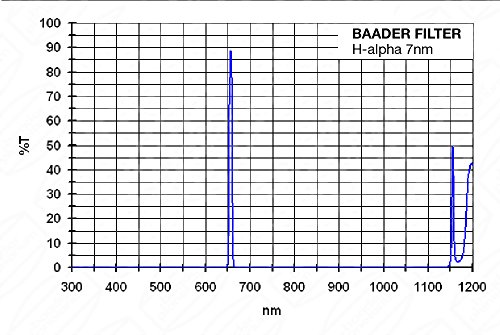 Studio : Baader Planetarium Publisher : Baader Planetarium Binding : Camera Product Description The Baader Planetarium H-Alpha 7 nm Narrowband Filter delivers the absolute highest contrast deep sky images of H-II regions, all with the shortest exposures possible. Its narrow 7 nm FWHM bandwidth has a transmission at H-Alpha of over 90%, while completely rejecting light pollution.The high optical quality of the Baader 7 nm H-Alpha filter guarantees no loss in sharpness or contrast. Each substrate is fine-optically polished plane parallel to deliver a smooth and accurate 1/4 wavefront over the entire surface. This special custom polishing operation sets Baader filters apart from the standard precision polished filter substrates used by most other filter manufacturers. Coatings are professionally applied by the most sophisticated equipment available, ensuring high consistency for bandpass centering and transmission. The ultra-hard ionbeam deposition ensures the coatings will never degrade from use or normal cleaning. 0