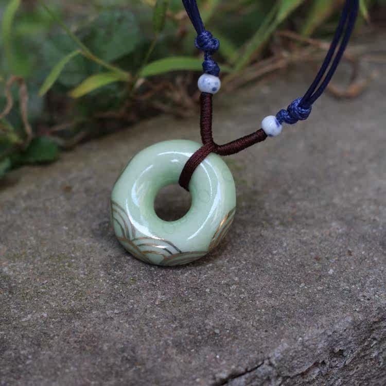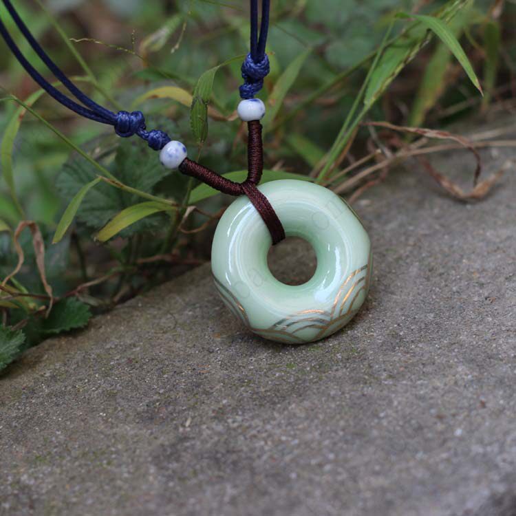 [Gilt-painted imitation jade peace buckle seawater] national air quality ceramic pendants pendant