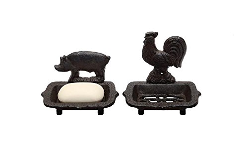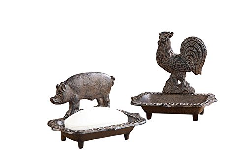 -. Brand : BCD -. EAN : 0755702428996 -. Feature : 6"L Cast Iron Soap Dish, 2 Styles / Due to the handmade and/or special order nature of our products, express delivery may not be available. Please allow up to 10-12 days for delivery. / High end quality and workmanship! -. ProductGroup : Home -. ProductTypeName : HOME_BED_AND_BATH -. Title : Cast Iron Soap Dish SET OF 2 Styles Pig Rooster Distressed Brown Finish Country Home Bath D -. UPC : 755702428996