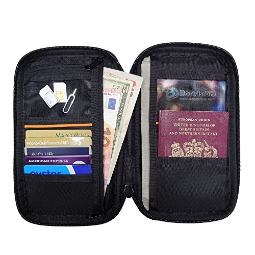 -. Brand : Bosvision -. Color : Black -. Department : mens -. EAN : 0635388990478 -. Feature : 100% RFID/NFC data protection with the RFID/NFC blocking fabrics / Designed to protect biometric passports and chip bank cards from unauthorized access / Organize 2 passports, 6 credit cards and 2 document/money pockets (1 zipped) / 2 mesh pockets (1 zipped) for business card, SIM cards, memory cards and iPhone pin / 1 exterior pocket for the ticket and boarding pass, 8.5 x 5 x 1 inches -. Model : BV-816B -. MPN : BV-816B -. PackageQuantity : 1 -. PartNumber : BV-816B -. ProductGroup : Apparel -. ProductTypeName : LAGE -. Title : Travel Organizer/Wallet-protect biometric passports and chip debit/credit cards -. UPC : 635388990478