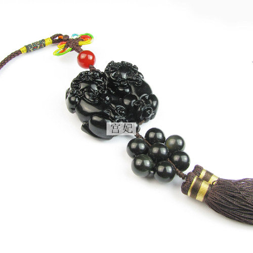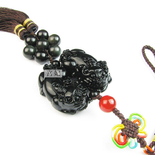 天然水晶车挂 天然黑曜石貔貅车饰