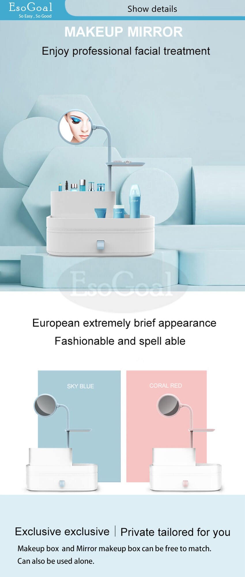 • Perfectly organizes and stores cosmetics and accessories; easy access to all of your makeup products