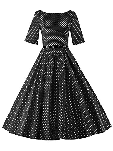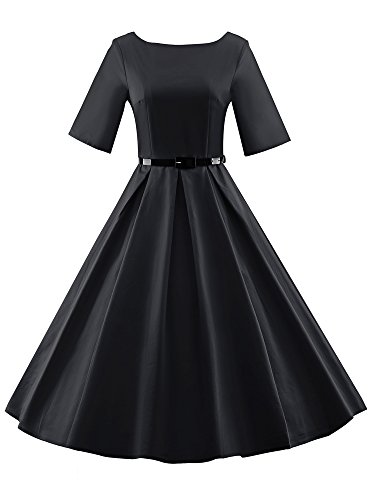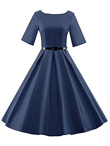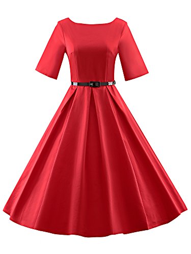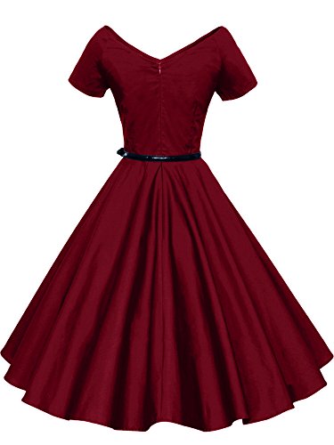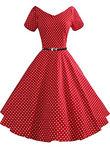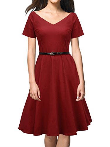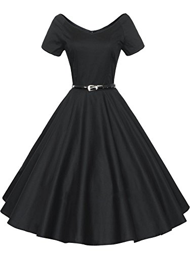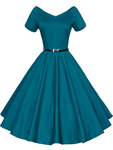 iLover Women 1950s V-Neck Vintage Rockabilly Swing Evening Party Dress