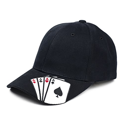 Title : Magic Casino Four Aces Poker Gambling Playing Card Adjustable Cotton Baseball Cap - Black