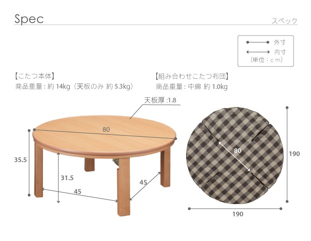 サイズ(cm):本体-直径80x高35.5・約14kg
