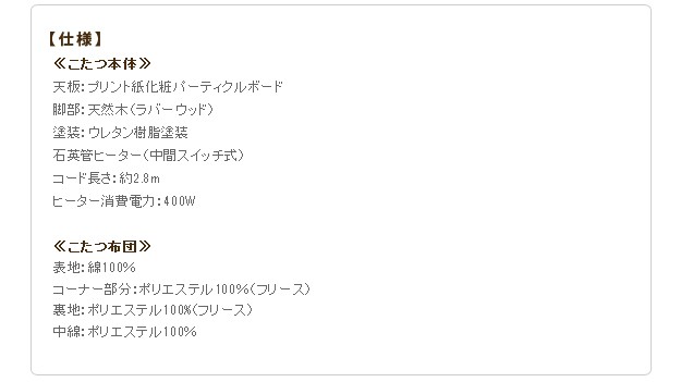 材質:天板-プリント紙化粧パーティクルボード、布団表地-ポリエステル100%