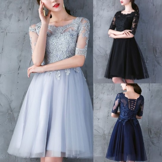 パーティードレス ひざ丈 ワンピース レース バックコンシャス トレンド シースルー 透け感 透明感 大人 上品 清楚 可愛い お呼ばれ drgz2149