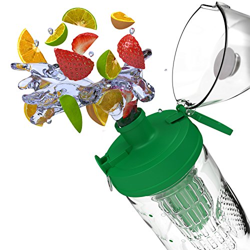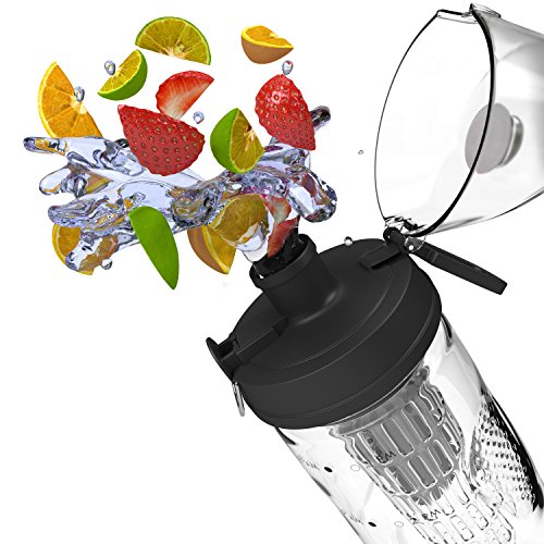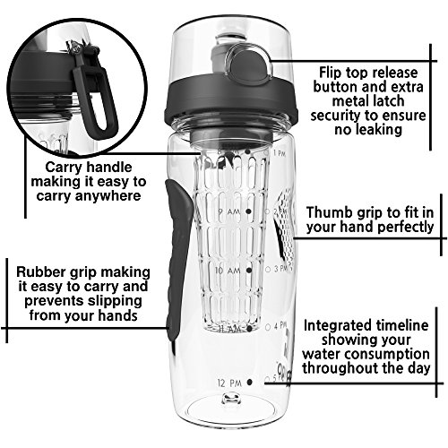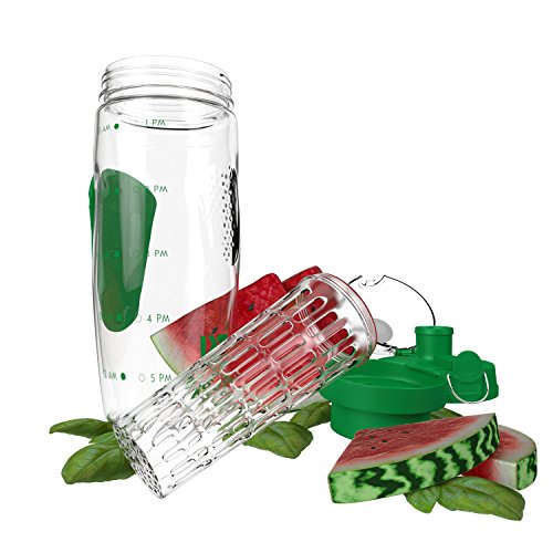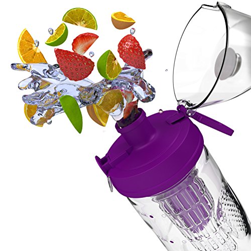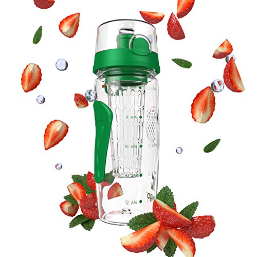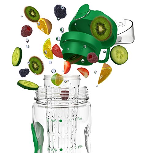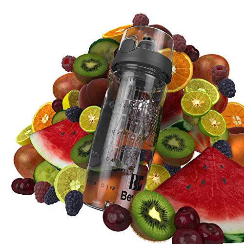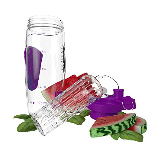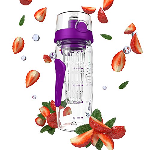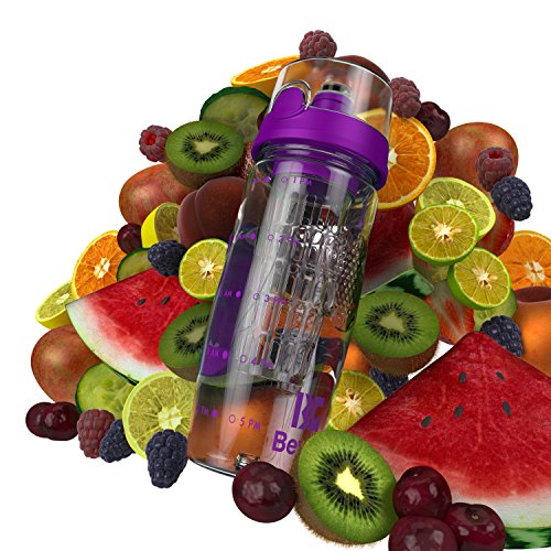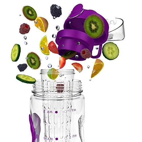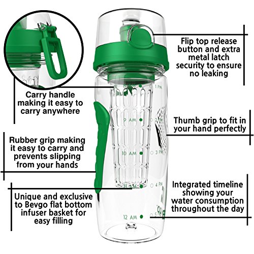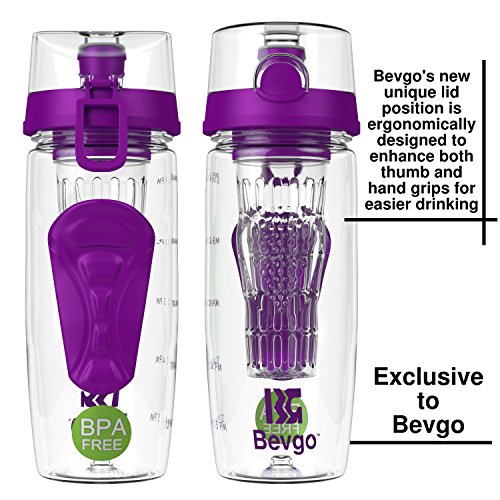 Bevgo Fruit Infuser Water Bottle - Large 32oz - Intergrated Timeline on all Bottles - Save Your Money and Hydrate the Healthy Way - Multiple Colors with Recipe Book Gift Included