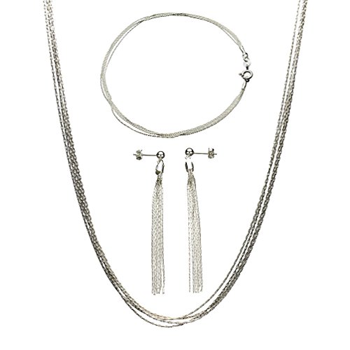 -. Feature : Solid 925 sterling silver, imported directly from Italy / Necklace - 4 strands tied together with a single lobster clasp and 2" extender / Bracelet - 4 strands tied together with a single spring ring clasp, 7.5" / Earrings - 6 strands, sterling silver posts, 2.38" / Hallmarked 925 ITALY