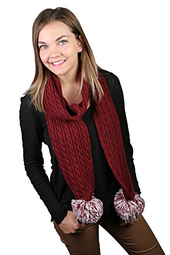 Binding : Apparel Product Description Let's go defense! Cheer on your favorite athletes when you wear this two color CC spirit pom scarf right around your neck. This maroon and white women's ribbed knit scarf will let you show spirit for your favorite sports teams. With two 5" two colored poms on each end, hold them up and use them as your own personal pom poms! More versatile than shawls and wraps, and the colors are great for cheering on the teams at Texas AM University and the University of Mississippi. So whether you're cheering them on in College Station or Starkville, or visiting your own alma mater, this scarf is a prime example of fashion meeting with functionality and great for back to school! 0