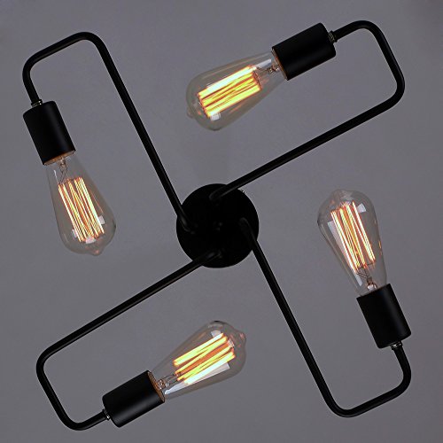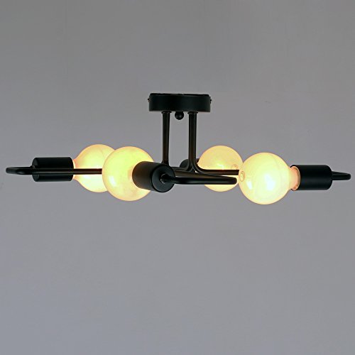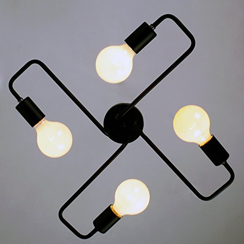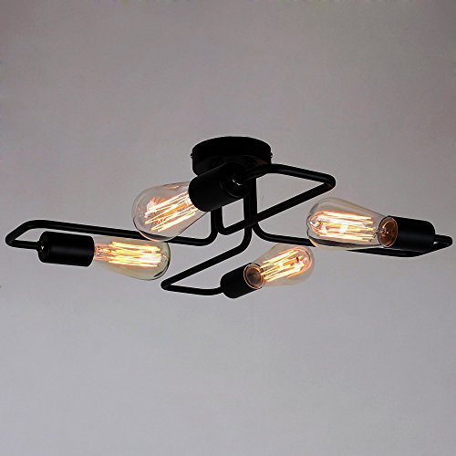 Unitary Brand Black Vintage Barn Metal Semi Flush Mount Ceiling Light Max. 160W With 4 Lights Painted Finish