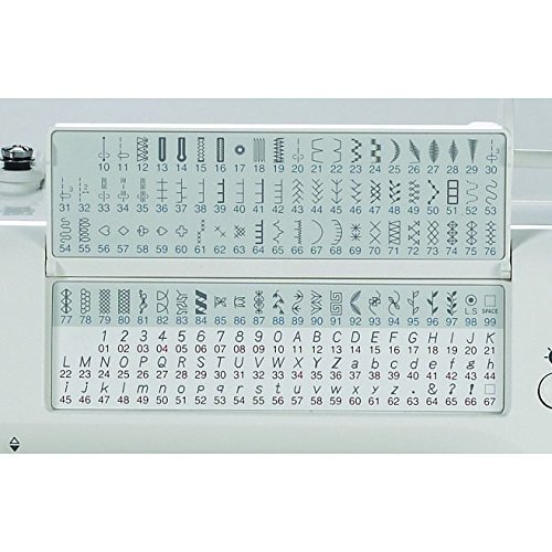 -. Feature : Backlit LCD screen with touchpad for easy navigation / Memory up to 50 patterns / Superior feed system (SFS) / Automatic thread tension control / Built-in needle threader