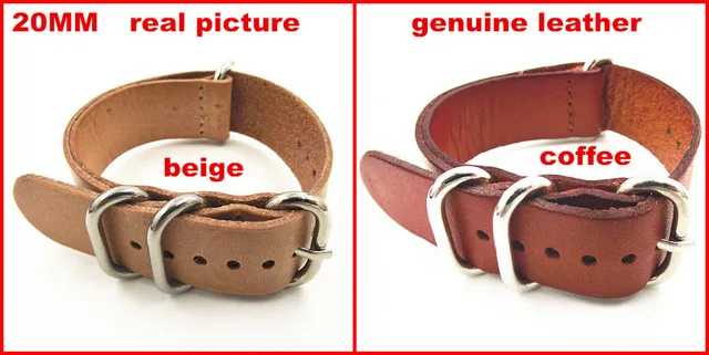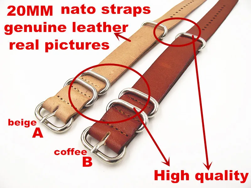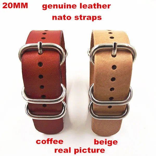 새로운 도착- 1 개 고품질 20mm 나토 나토 끈 진짜 가죽 시계 밴드 스트랩 시계 스트랩- 100802