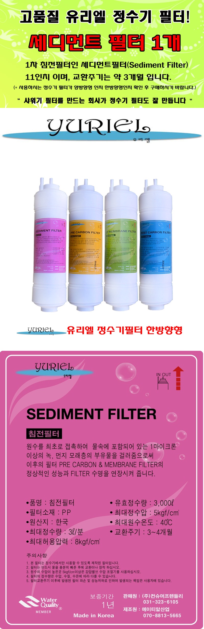 - 품명 및 모델명유리엘 세디먼트필터 한방향_1개