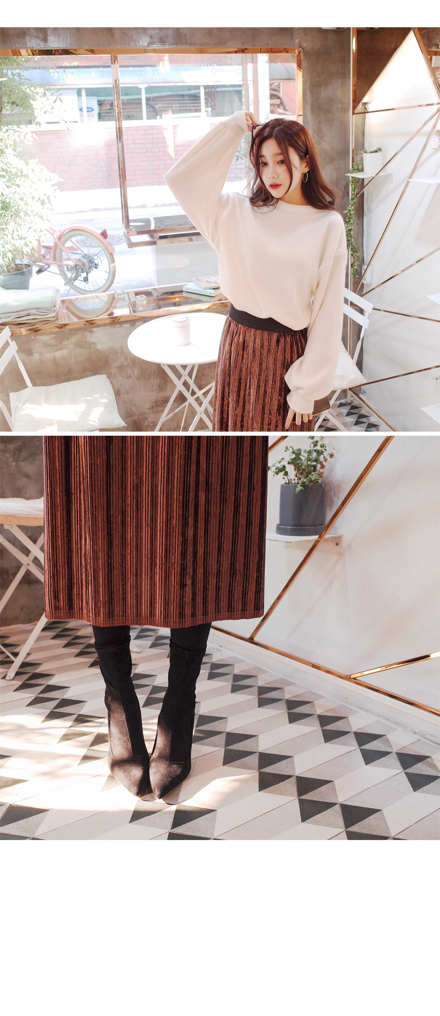벨벳주름 스커트