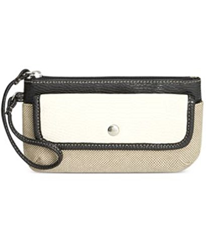 Style & Co. Womens Aurora Faux Leather Woven Wristlet Wallet Beige O/S