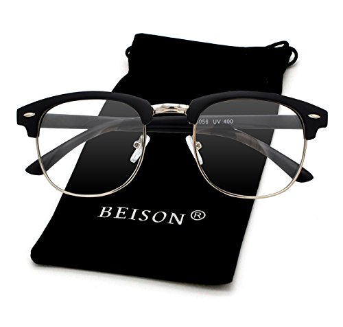 Beison Womens Mens Horned Rim Wayfarer Glasses Frame Nerd Eyeglasses