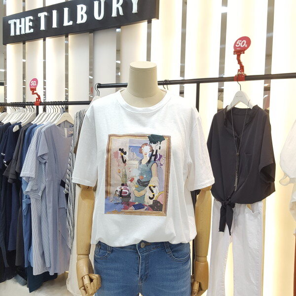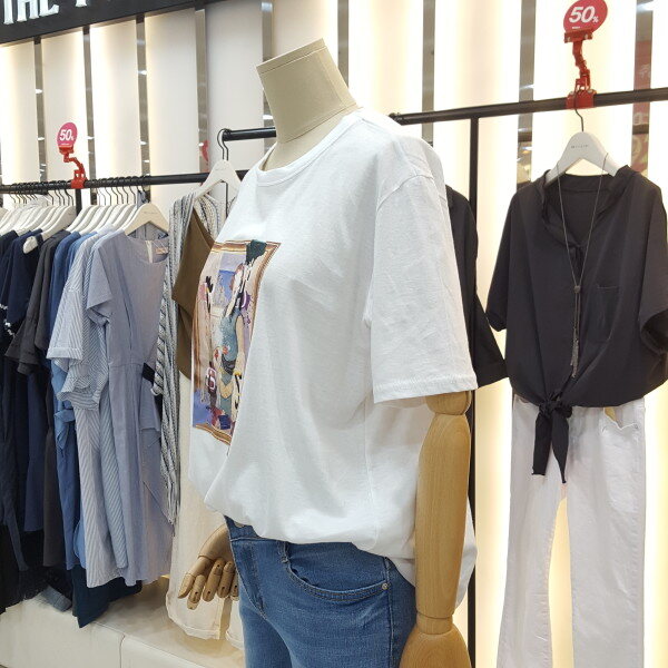 전면 프린트가 포인트인 라운드 티셔츠입니다.여러 아이템과 매치하여 트랜디하게 연출해보세요.