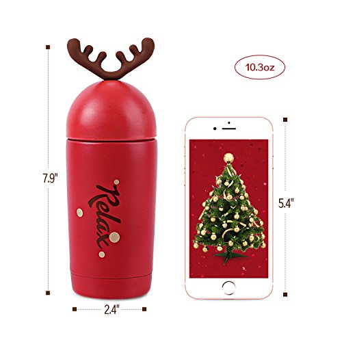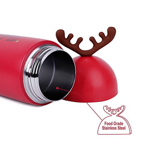 Homespon Christmas Deer Horn Shape Thermos Cute Vacuum Insulated Mug Stainless Steel 10-Ounce Water Bottle
