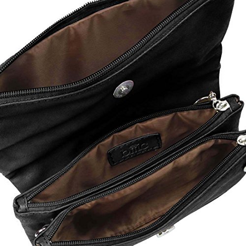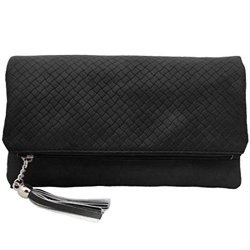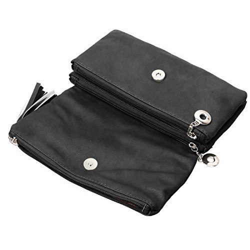 BMC Womens Midnight Black Textured PU Faux Leather Quilted Pattern Triple Compartment Zipper Tassel Fashion Clutch Handbag