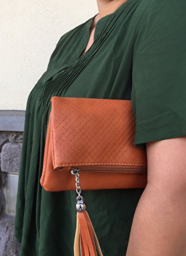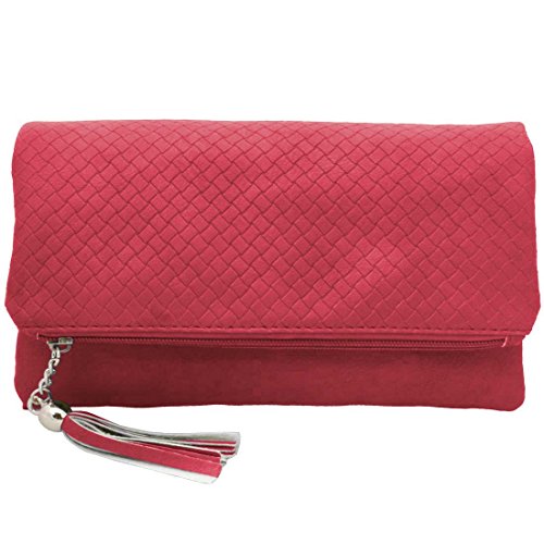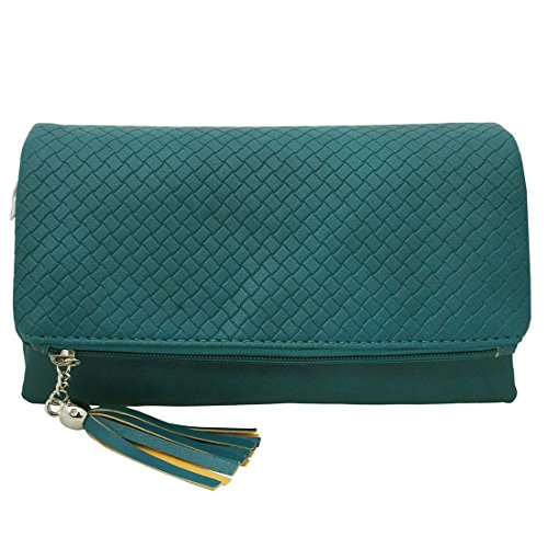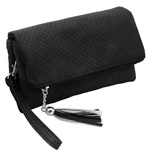 This small, midnight black faux leather clutch may be the must have fashion accessory you have been looking for. The small handbag features a quilted, woven lattice pattern on the front flap and features 3 separate compartments. Each compartment is zipper sealed and features interior lining. This bag has enough room for your essentials, and the different compartments will help to keep you organized. Transition this clutch to a shoulder handbag or crossbody bag with the removable, adjustable strap. There is also an additional wrist strap that can be added to the bag to create that wristlet clutch look. The bag also features small touches such as the zipper tassel and the b.m.c branded logo patch on the interior. Definitely a great addition to any look. *NOTE*: Due to differences between monitor displays, actual color may vary slightly from image. b.m.c is a registered trademark of Remi Collections LLC and is exclusively distributed by Bundle Monster. The b.m.c trademark is protected by US Trademark Law.