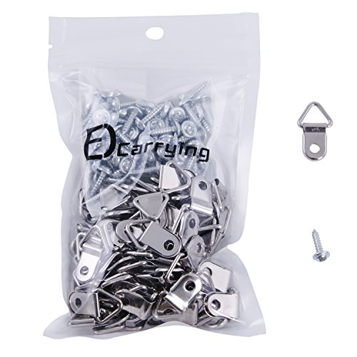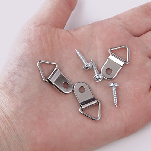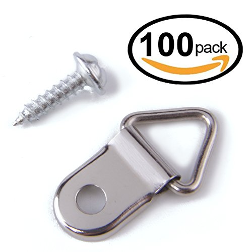EDCarrying 100 Pack Heavy Duty Triangle Ring Picture Hangers with Screws Single Hole PH-2 (Silver)