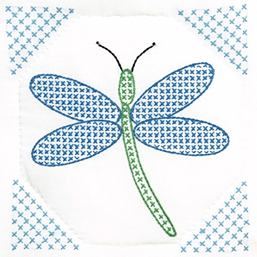 Stamped White Quilt Blocks 9"X9" 12/Pkg-Dragonfly