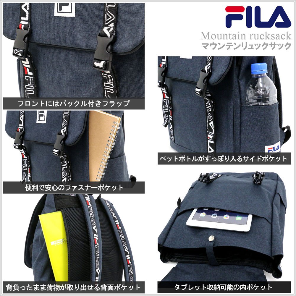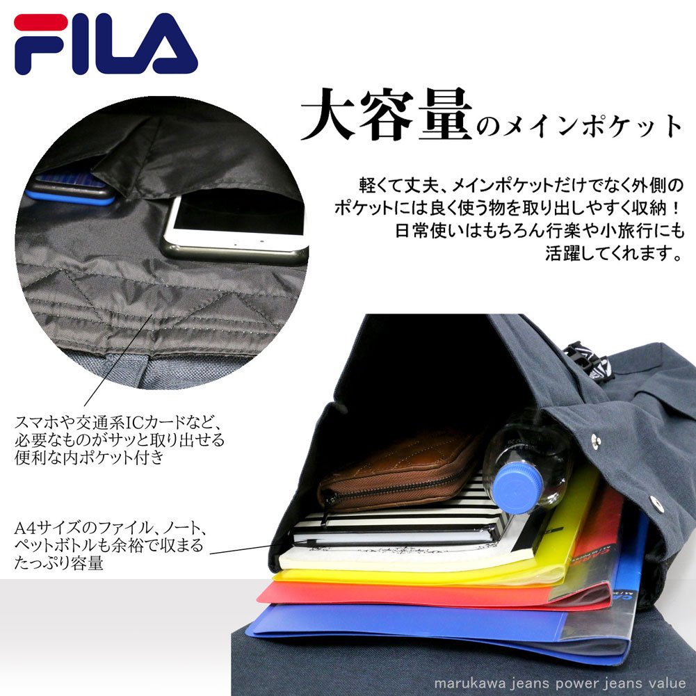Front pocket × 1 zip pocket × 1 FILA logo emblem