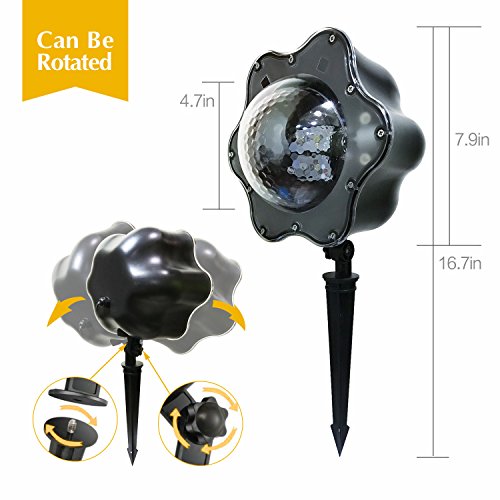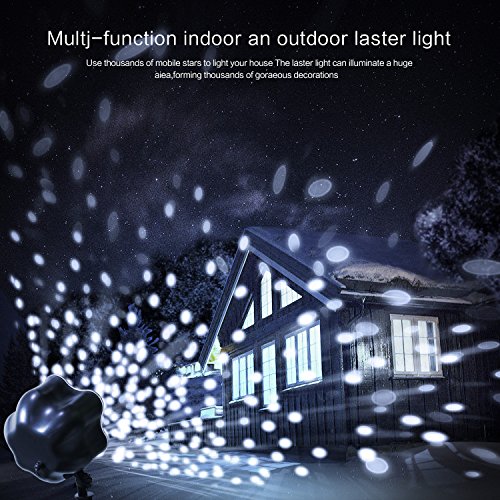 -. Feature : Unbelievable Snowfall Effect---With numerous snow dots move automatically, ideal to create a unique and fairy display for your garden, patio, lawn, party, wedding, festival, Christmas, New year and Hallowee, Create a snowy environment / Easy Installation & Operation---Come with detailed inrtroduction. Only one Multi-function Button on the back of the light, no need to remember different buttons like other projector light.Remote controller with 2 snowfall Modes & 3 Speed Modes,Let you feel different snow environment. / No Blurry with Large Projection & Wide Spotting Range---Up to 32 feet Snowflakes projecting distance - Decorate the whole house, garden or backyard. Shining all night long! About 165 degrees wide radiation range, never left a corner, be able to decorate the whole house with only one light and covers more than 1000 square feet, saving more space and money.The light is powerful enough to cover large area to decorate your wall , house and your Christmas tree. / Waterproof, Perfect for Outdoor---Weatherproof (IP65) protection - it will work normally in rain or snow day. The working temperature (14℉-122℉) makes it ideal for all year round, widely used in all kinds of occasions. But please do not put the light underwater or soak the light in heavy rain. / 3-Year-Warranty---Low voltage products with UL safety certificated. You will get 90-Day Money Back Guarantee, 36-month warranty, quick response and friendly customer service.Within 24 hrs customer service if you have any questions or problems.