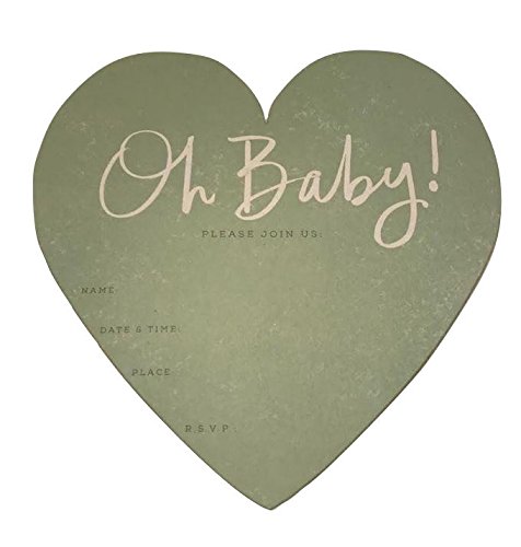 (30) Oh Baby! Green Diecut Heart Fill In Baby Shower Invitations - Decorated Gingham Envelopes - Gender Neutral Color