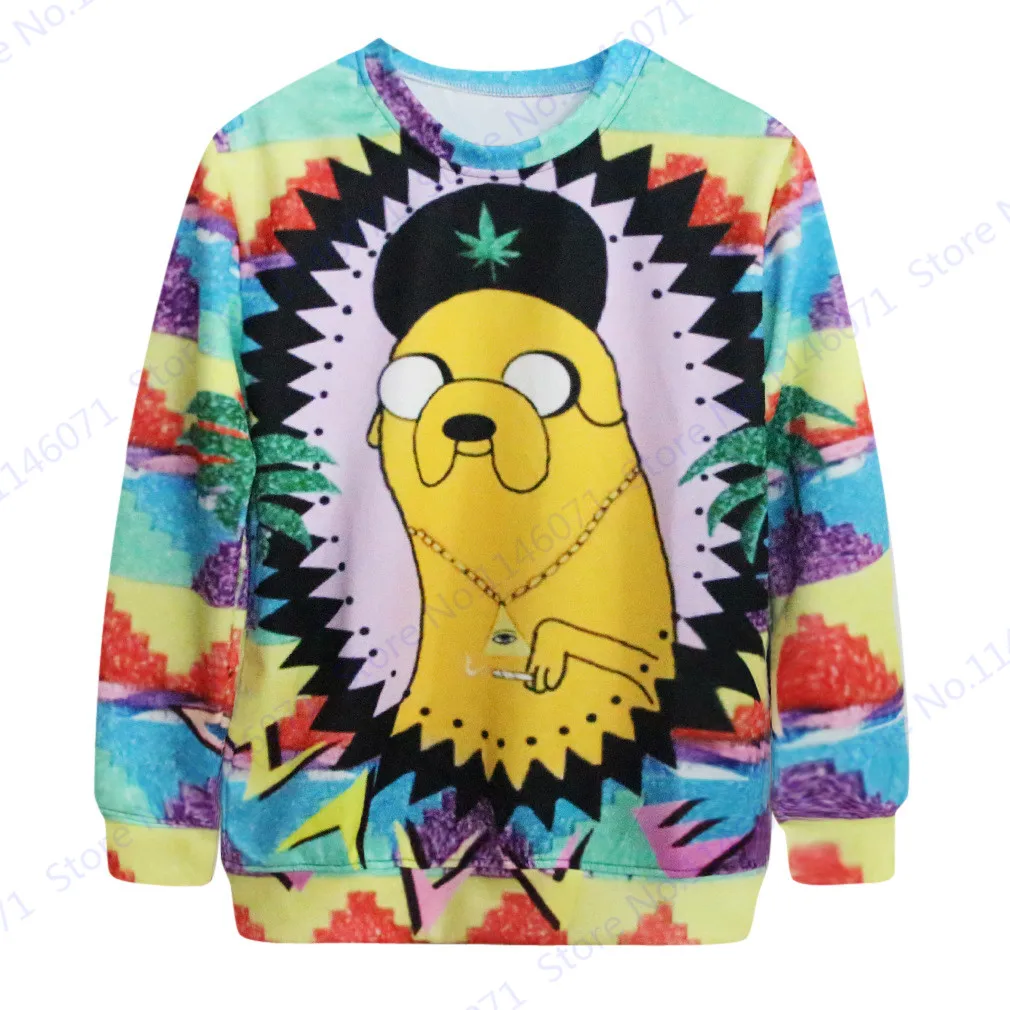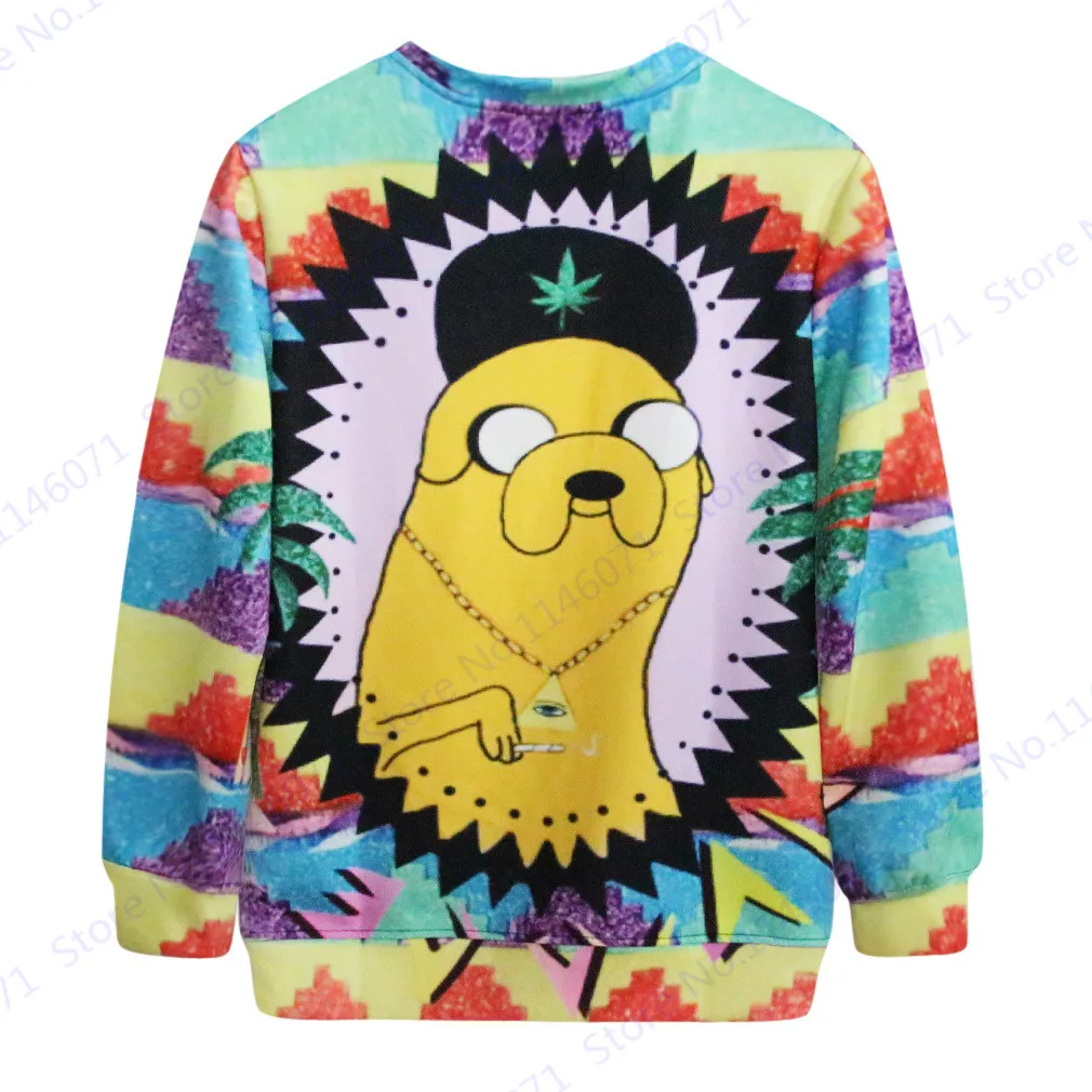 Features 2:Cartoon Adventure Time Pattern Pullover Tops Feminina Exercise Sweater
