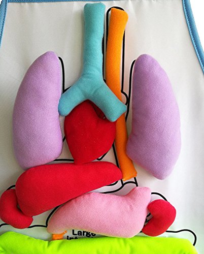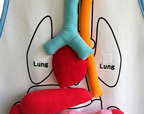 Anatomical apron has been printed with the name and place of each organ. Each organ is pasted in velcro and is removable. It is great teaching aid for teaching anatomy, help children know what's inside human body, know the name, size, shape and locations of the organs, to help children gain a basic understanding of some of the most important organs in the body. Anatomical apron with vintage graphic design. This hilarious apron would make a super costume prop or educational tool for human biology and medical teaching. 0
