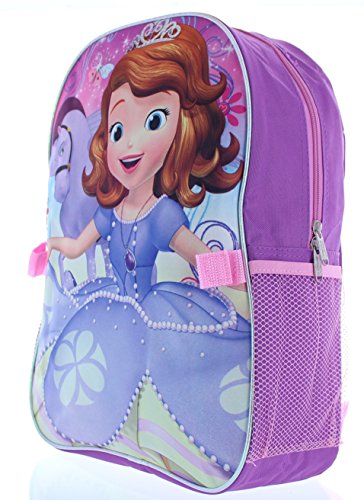 This Sofia the First backpack can easily carry books, gym clothes, pencils and more! It features a roomy main compartment, the sides feature mesh pockets that are great for storing a calculator, note cards or even a water bottle. The lunch bag is big enough to store lunch and snack for the day and conveniently attaches to the backpack thanks to its velcro straps. This set can be hung up when not in use by the webbed locker loop. This set is designed in Purple durable fabric with accents of Pink with fun images of the cute Princess Sofia the First! The perfect back to school choice for any Sofia the First fan!