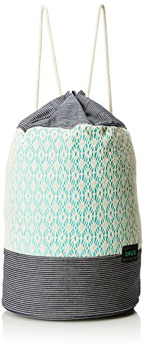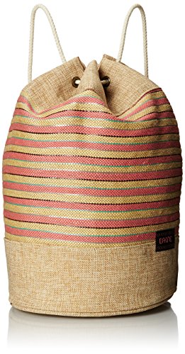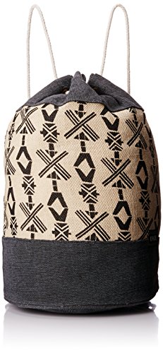 Rope drawstring closure and shoulder straps. Metal grommet hardware. Interior zippered pocket. Unlined. Specs: 1000 cu. in. [ 15L ] 17 x 15.5 x 10" [ 43 x 39 x 25cm ].