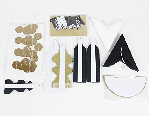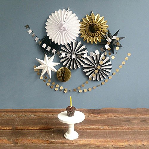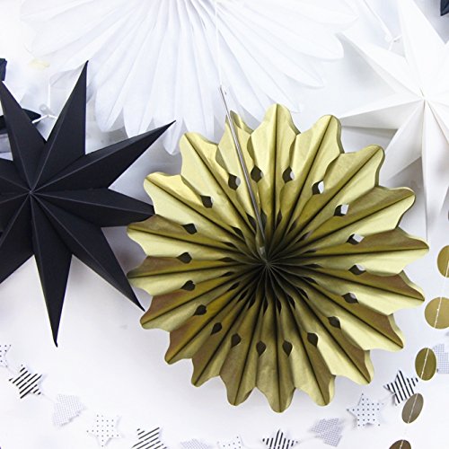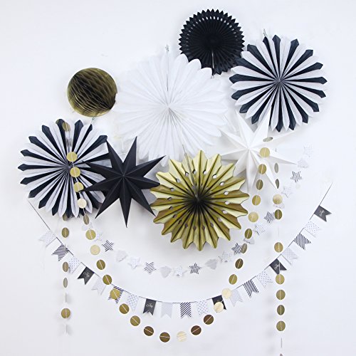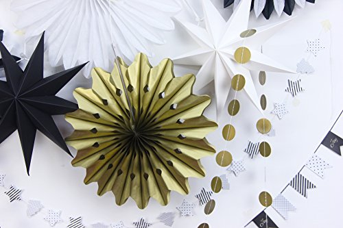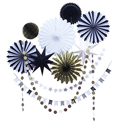SUNBEAUTY Black White Gold Tissue Paper Fans Paper Garlands Christmas Decorations Kit, 10 Pieces (Black White Gold)