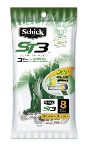 Schick ST3 Slim Triple Disposable Razors for him is sensitive for long - lasting smoothness and comfort so you could skip a day or two. It come with three blades.Feature
