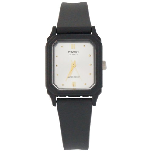 Studio : Casio Publisher : Casio Binding : Watch Product Description Ladies, on the go or just at home this casual classic says you know style. Black casual classic ladies watch with white dial and gold colored markings. Water resistant - 50 Meters Special features - Measures-seconds Display Type - Analog Case diameter - 21 mm Band Material - Resin Band width - 12 mm Dial color - White Bezel material - Resin Band Color - Black Band length - Ladies's Standard Case Thickness - 8 millimeters Case material - Resin Movement - Analog quartz 0