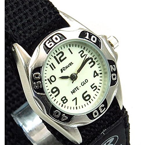 -. Binding : Watch -. Brand : Ravel -. Color : Black -. Department : boys -. EAN : 0793494122692 -. Feature : Easy to read clear digits with black canvas band that attaches with easy-to-fasten Velcro. / Black velcro fabric wrap strap (adjustable) / Glow in the dark nite-glow dial / Fit wrist size 14 cm- 18 cm. / Quartz movement with analog display -. Label : Ravel -. Manufacturer : Ravel -. Model : R1704.3 -. MPN : R1704.3 -. PartNumber : R1704.3 -. ProductGroup : Watch -. ProductTypeName : WATCH -. Publisher : Ravel -. Studio : Ravel -. Title : Ravel Nite-Glo Black Luminous Dial Black Velcro Strap Boys Watch R1704.3 -. UPC : 793494122692