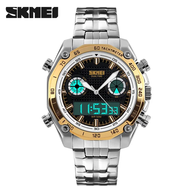 | [해외] SKMEI 1204 남성 디지털 석영 패션 스포츠 손목 듀얼 시간대 엘 빛 시계 럭셔리 Relogio Masculino 시계 |