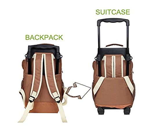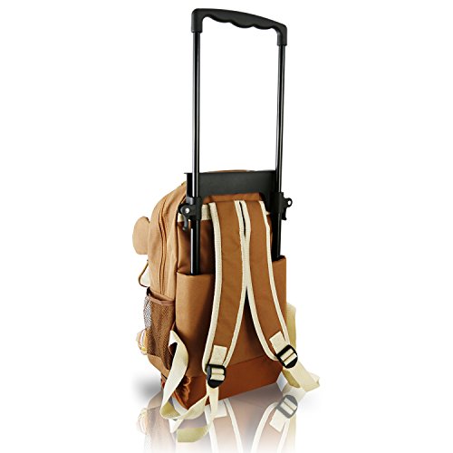 COMFORTABLE SHOULDER STRAPS AND WHEELS: The adjustable padded shoulder strap and air mesh cushioned breathable back panel provides comfort. The firm wheels and plug buckle pull rod to the backpack are easy to manage with. This can help reduce loads.