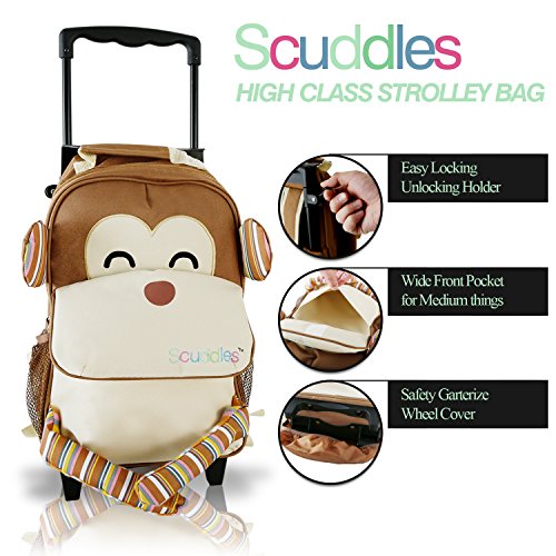 CUSTOMIZED MONKEY DESIGN: Scuddles want the best for your little one and our trolley school bag with a cool zoo monkey pattern is perfect to show off their fun and adorable personality. Your child will love wearing or pulling the carry on size bag.